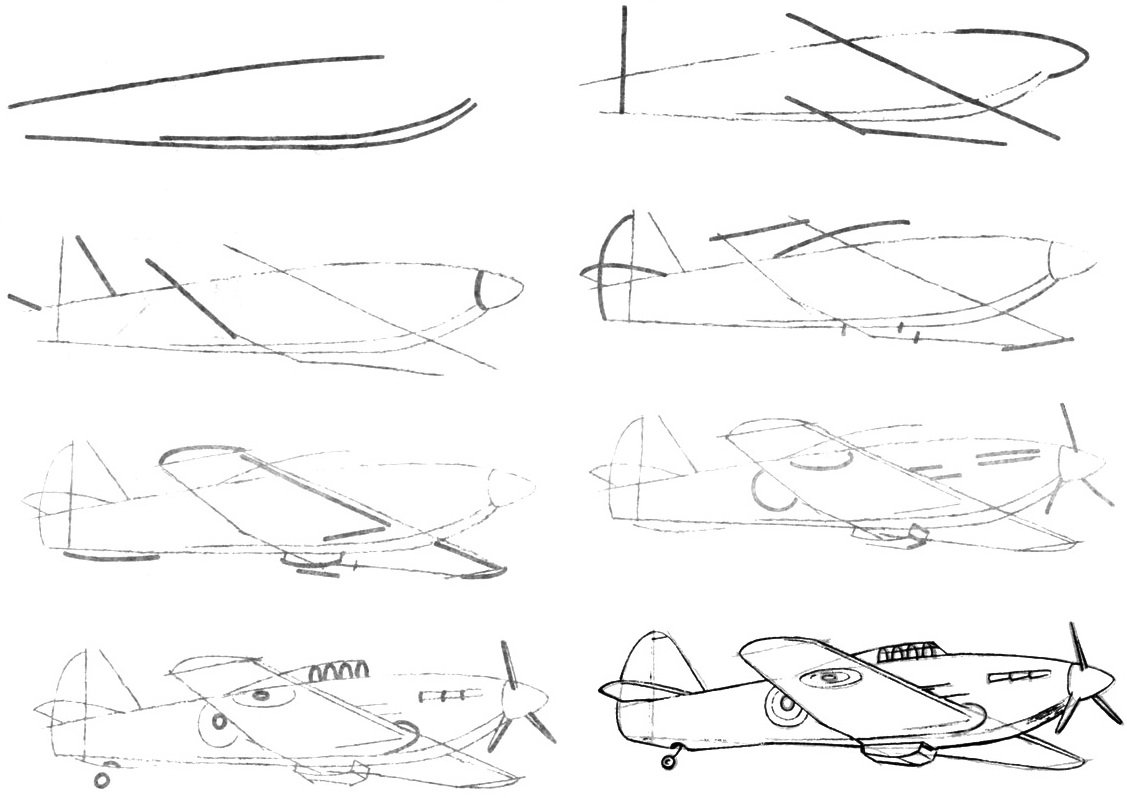 Поэтапное рисование самолета