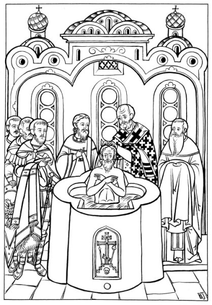 ![Раскраска Иоанн Креститель крестит Иисус]()