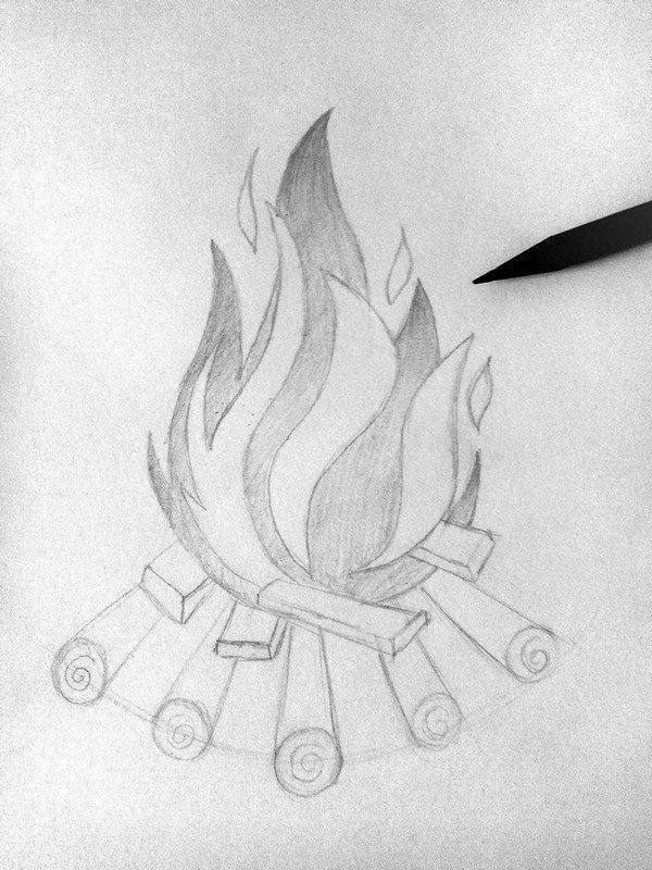 Костёр рисунок карандашом