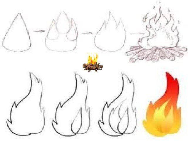 ![Как рисовать костер]()