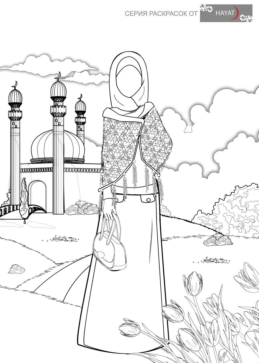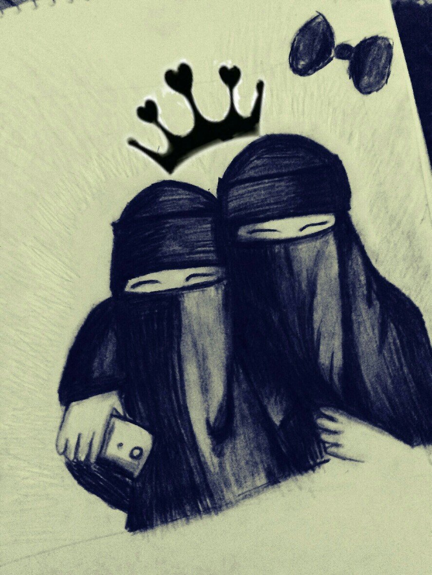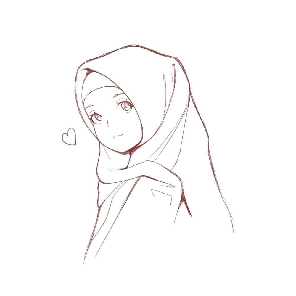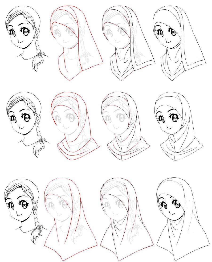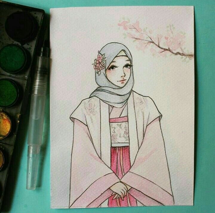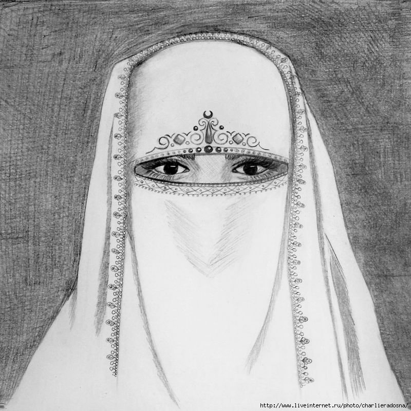 ![Рисунок девушки в хиджабе карандашом легкий]()