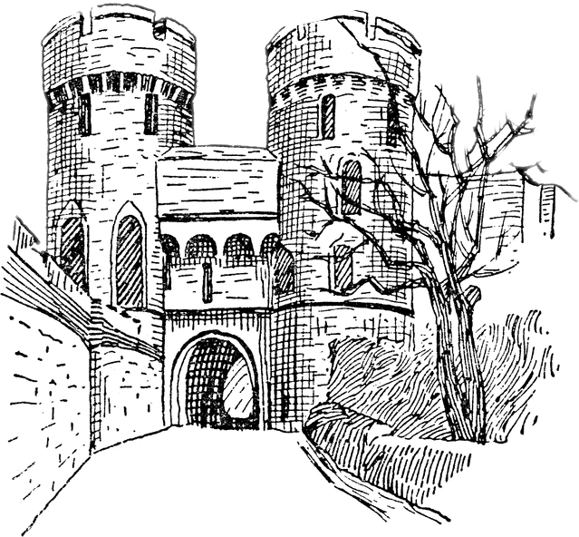Средневековый замок зарисовка средних веков