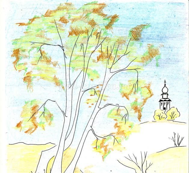 ![Рисунки на осеннюю тему цветными карандашами легкие]()