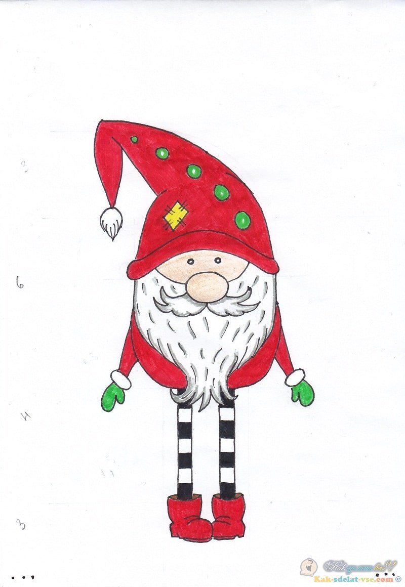 Рисунок новогоднего гнома
