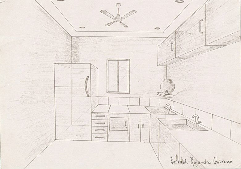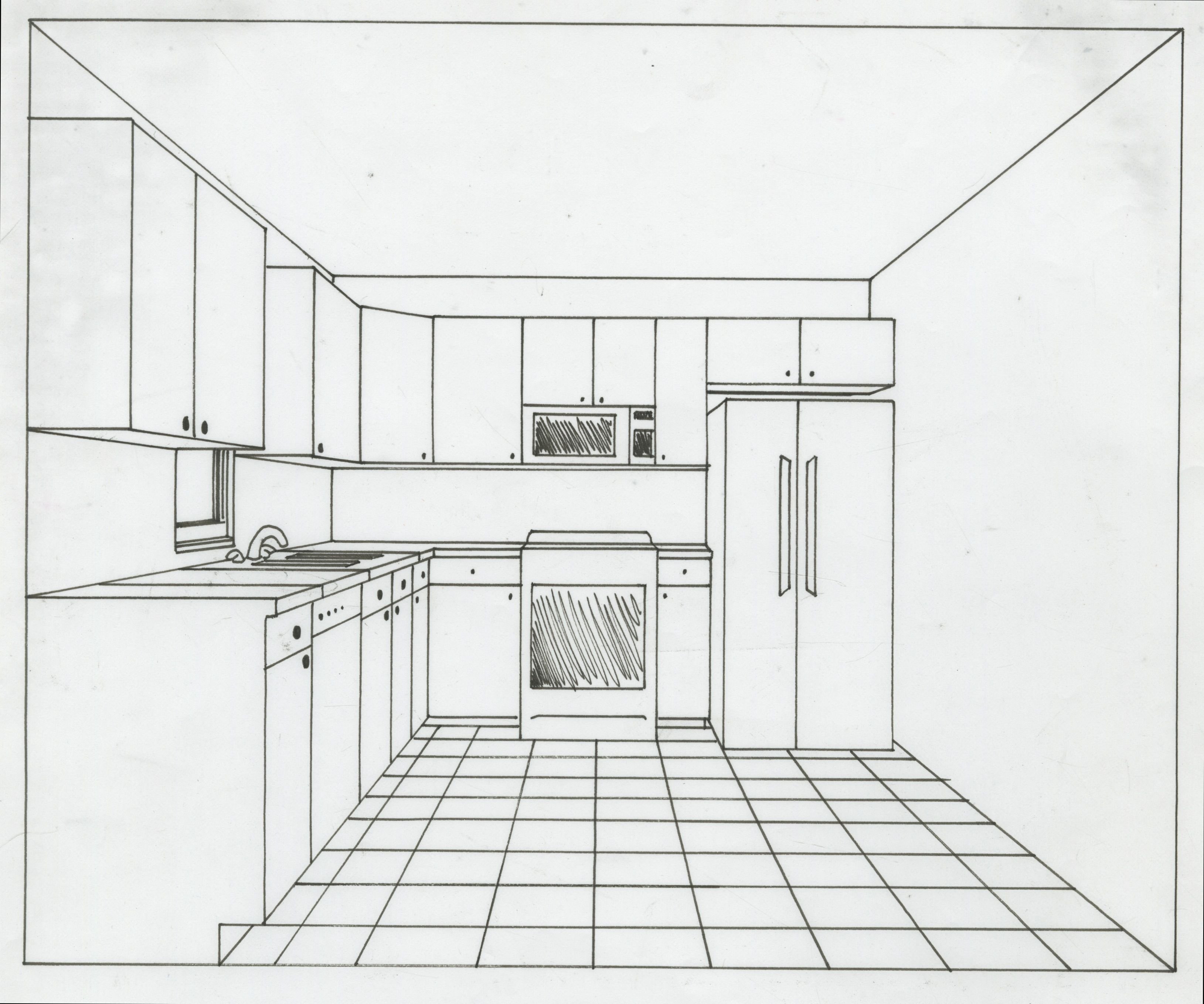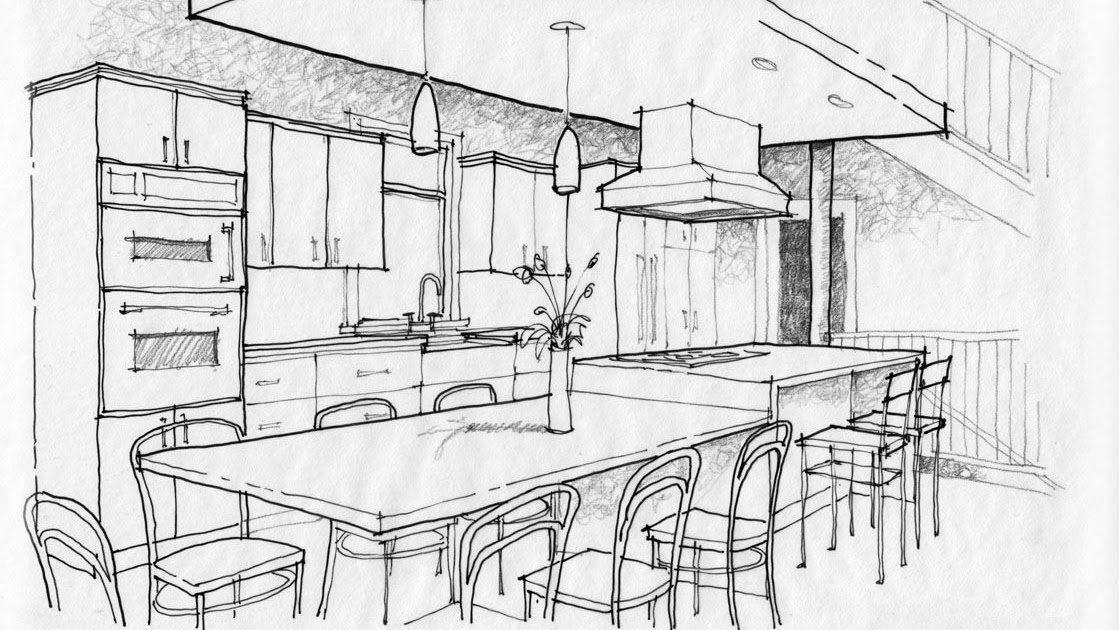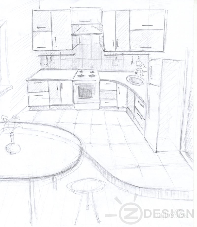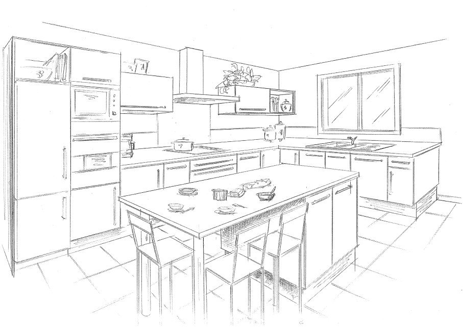 ![Набросок кухни карандашом]()