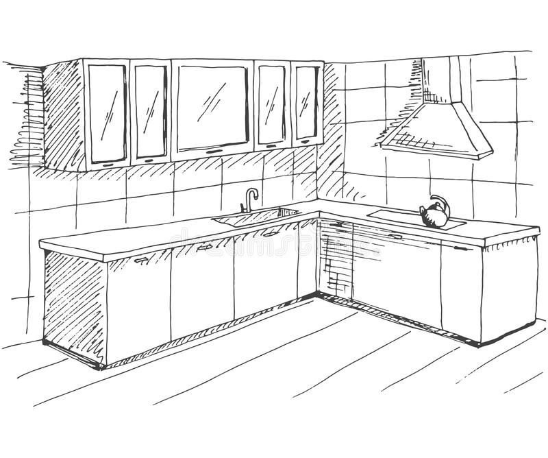 ![Набросок кухни рисунок]()