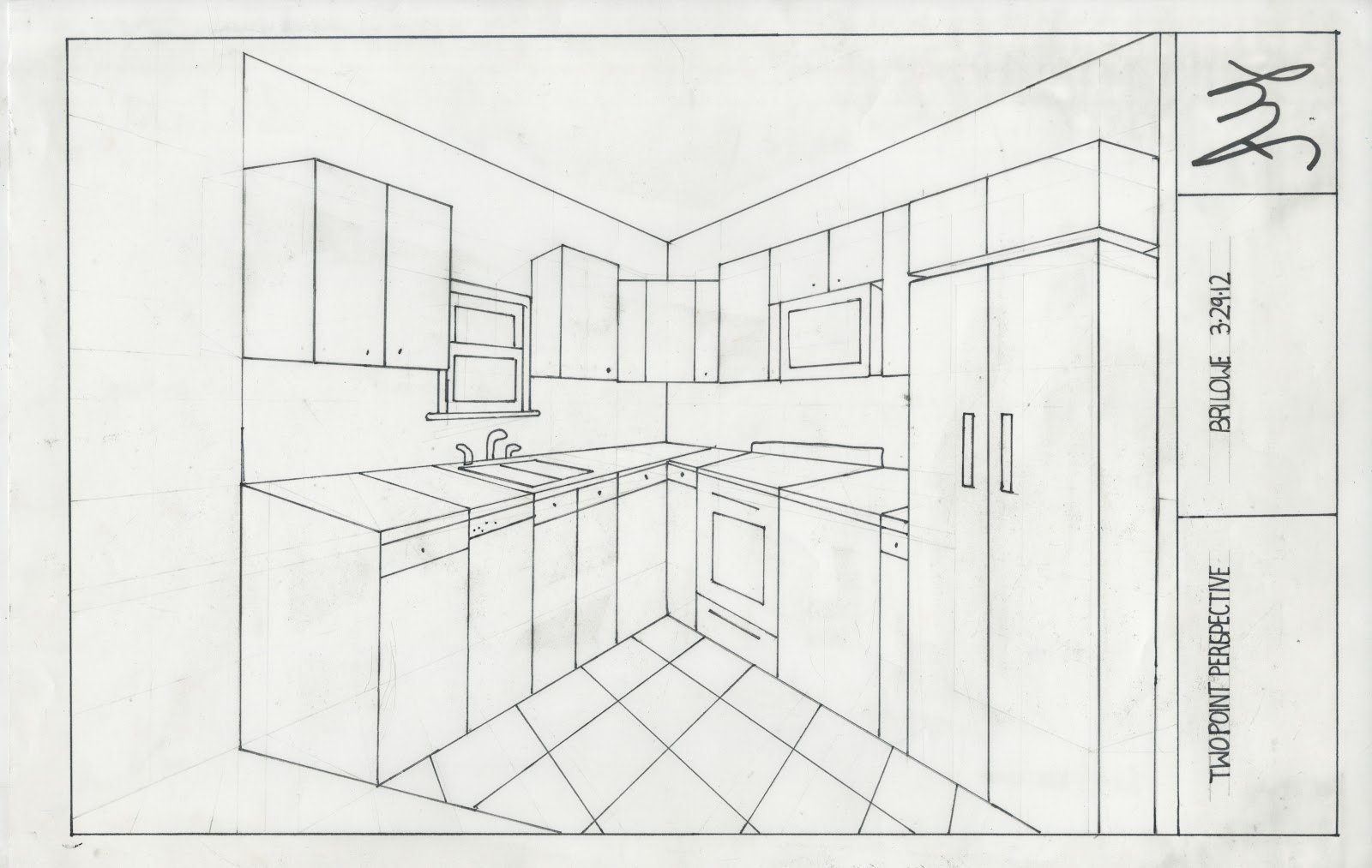![Интерьер кухни рисунок карандашом]()
