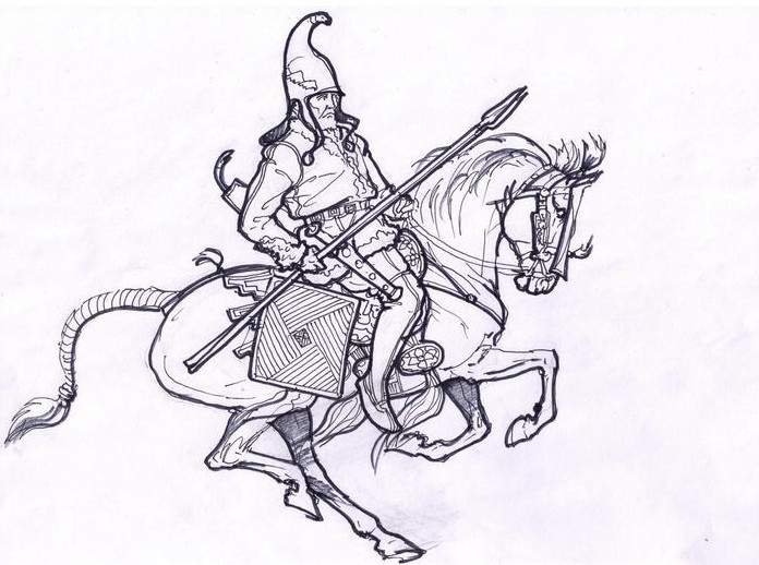 ![Богатырь на коне рисунок]()