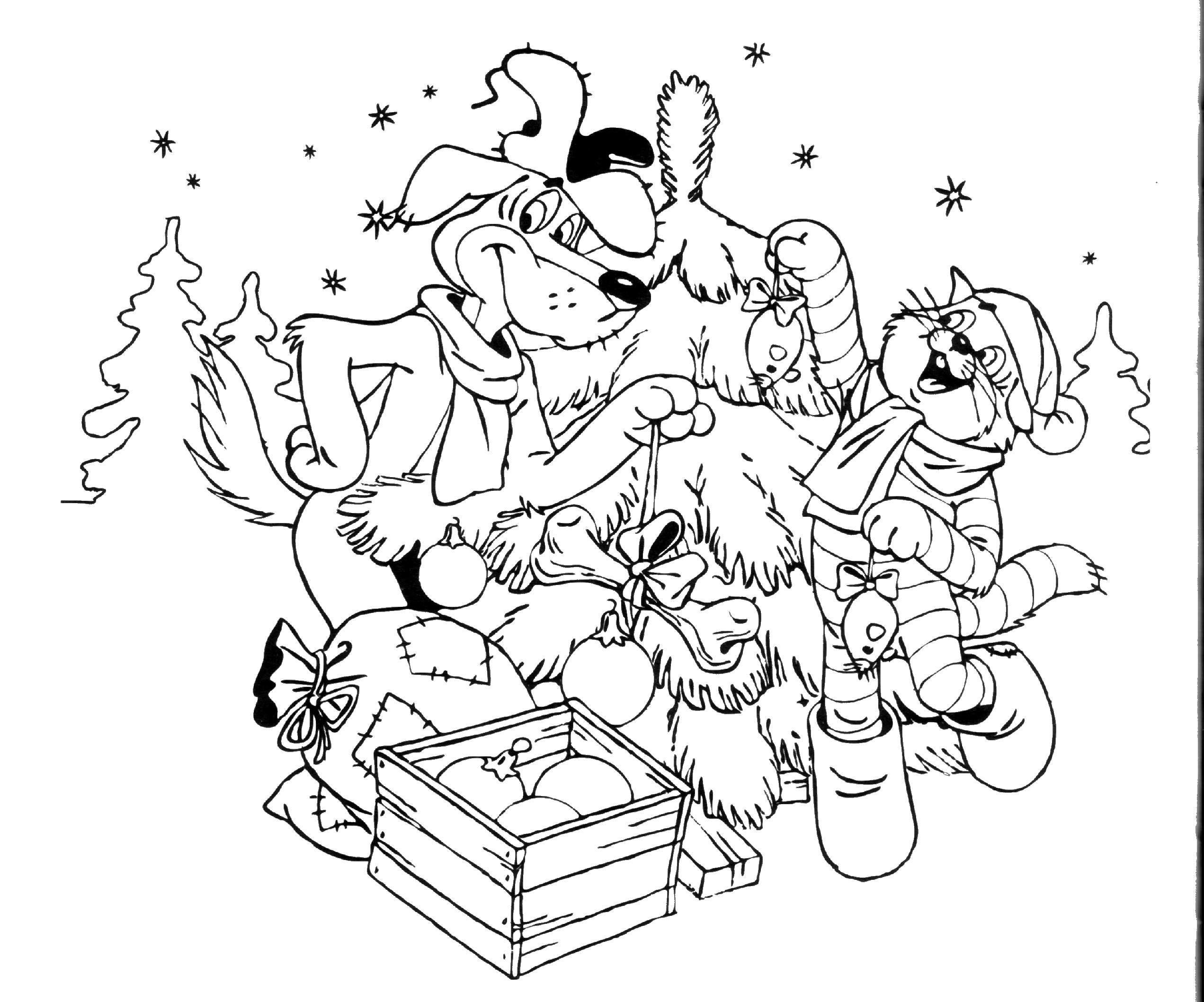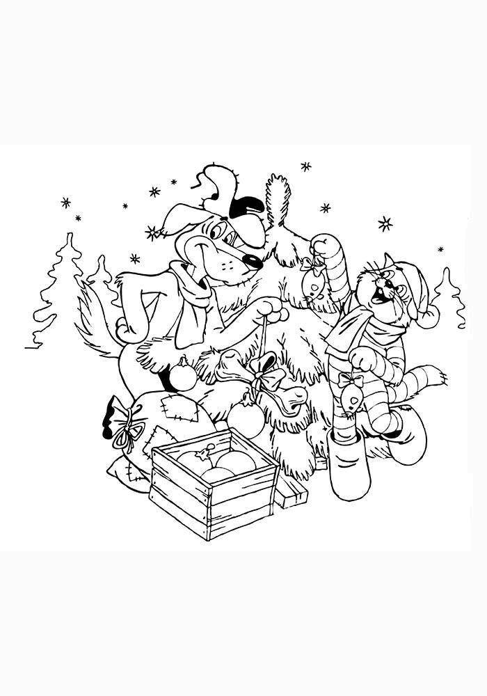 Новый год в Простоквашино раскраска