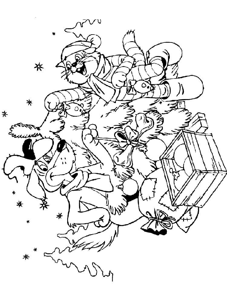 Новогодние раскраски Простоквашино