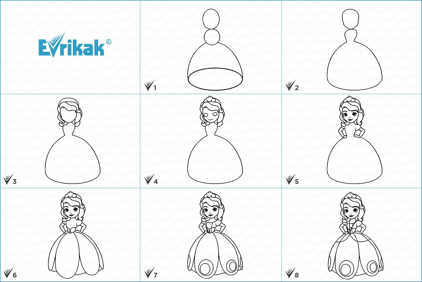 Принцессы пошаго рисование для детей
