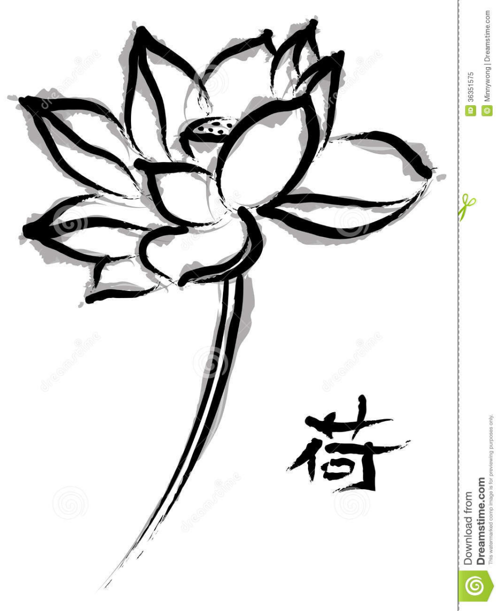 ![Лотос с китайским иероглифов тату эскиз]()