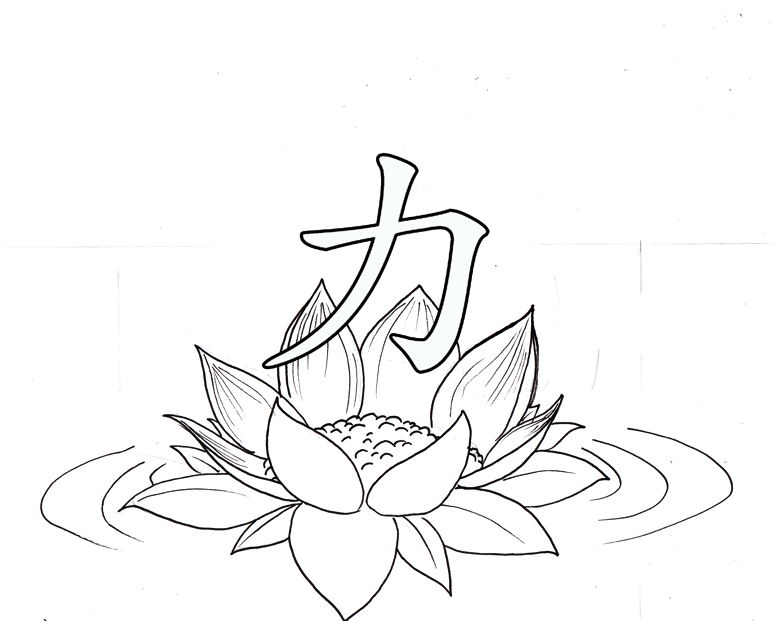 Лотос с китайским иероглифов тату эскиз