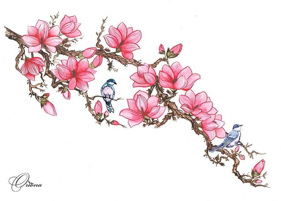 Ветка Сакуры тату эскиз