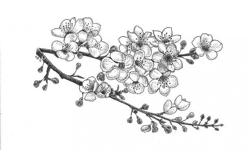 Сакура рисунок черно белый