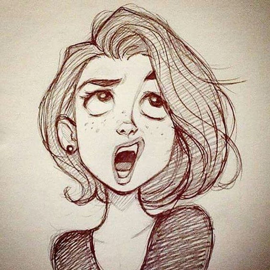 ![Мультяшные лица девушек карандашом]()
