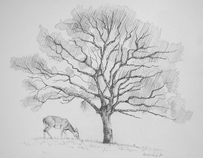 Зарисовки деревьев карандашом простые