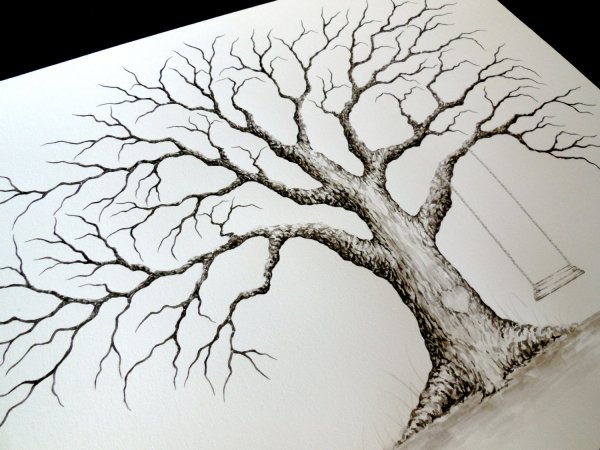 Дерево без листьев карандашом