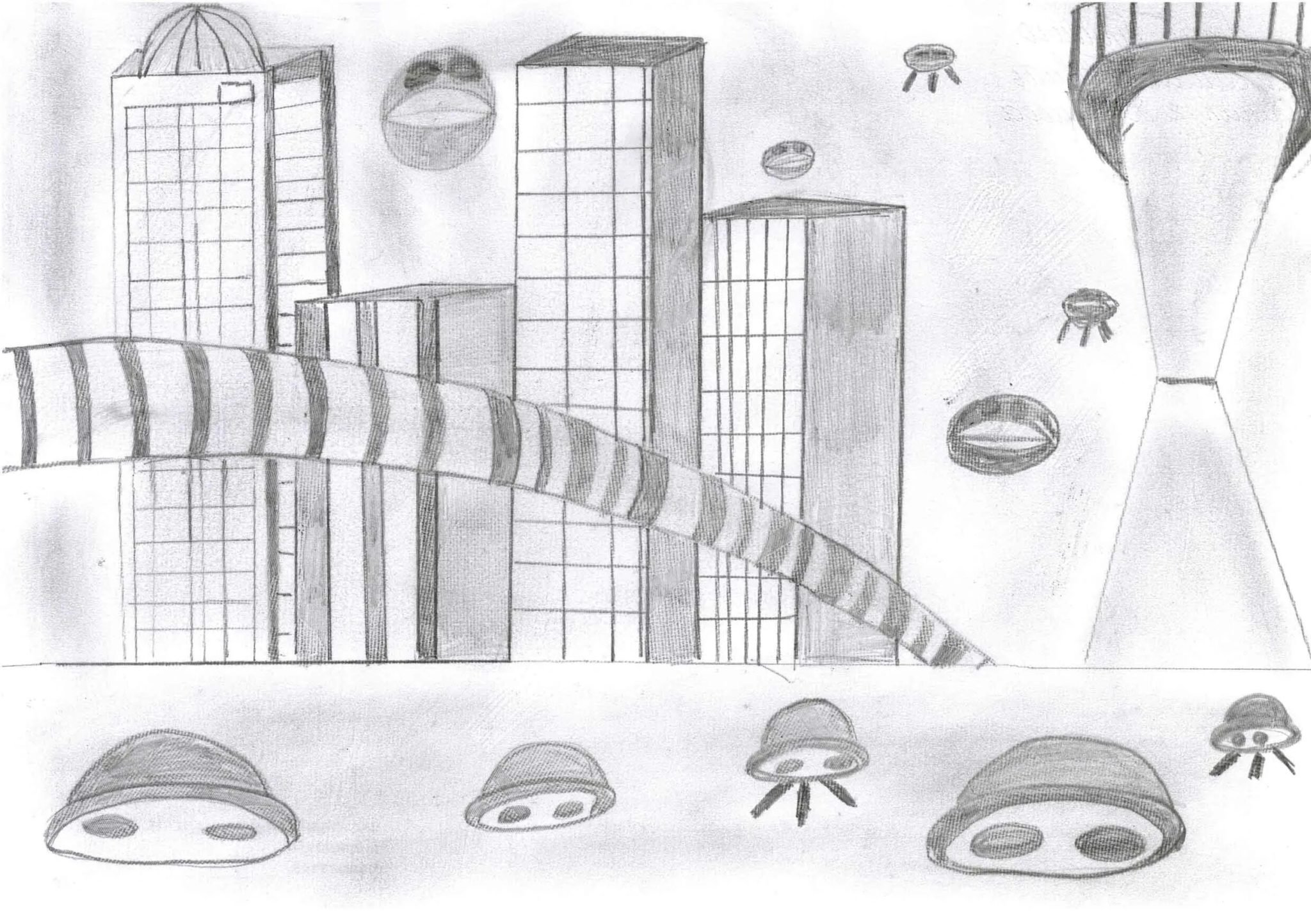 ![Город в будущем карандашом]()