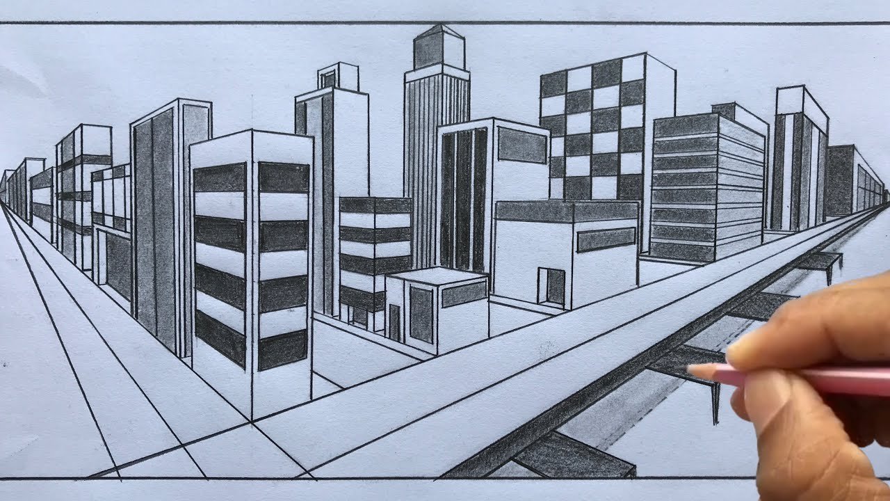 ![Современные здания карандашом]()