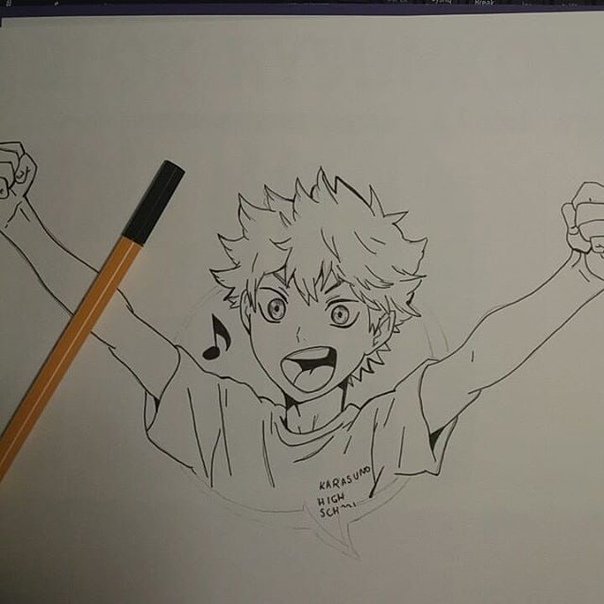 ![Аниме волейбол Хината карандашом]()