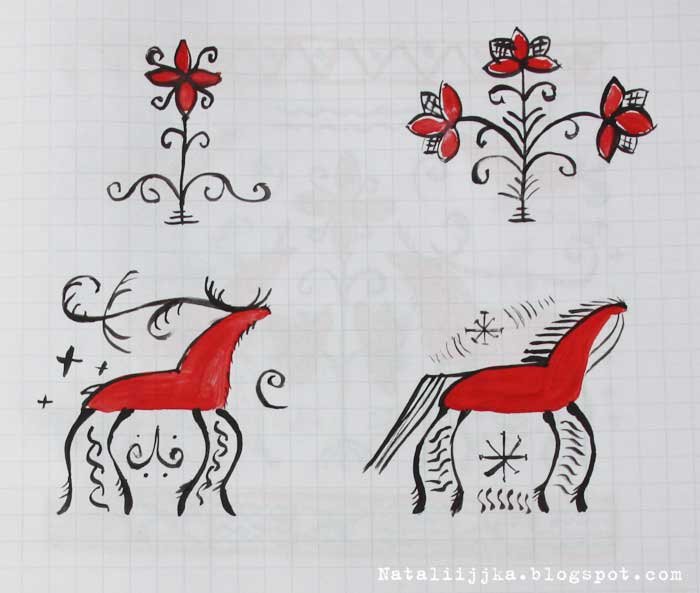 ![Мезенская роспись элементы конь]()