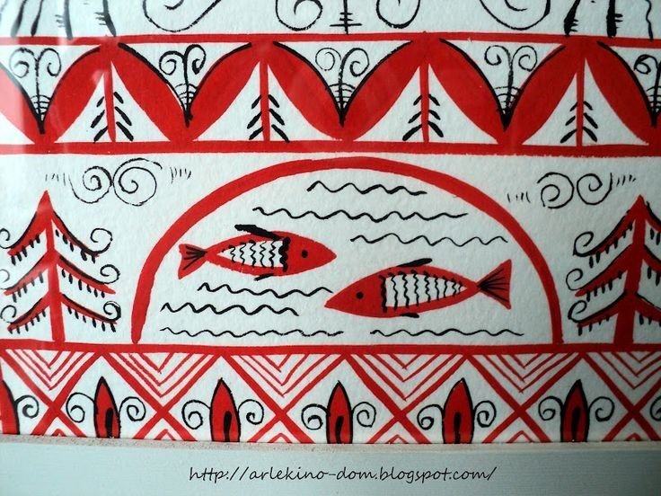 ![Мезенская роспись рыбки]()