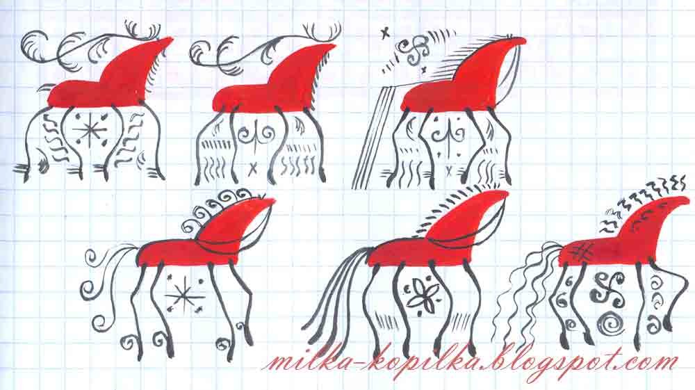 ![Мезенская роспись конь поэтапно]()