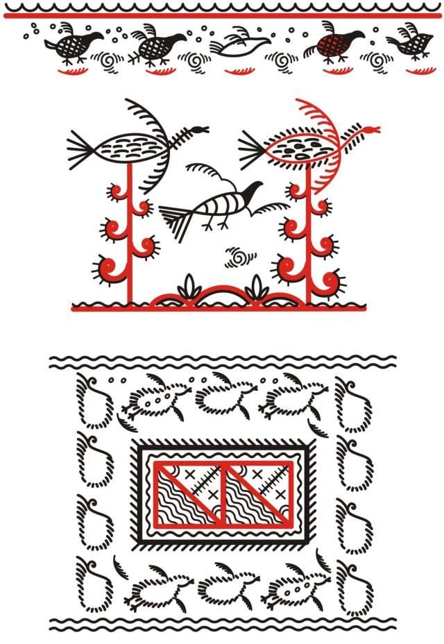 ![Мезенская роспись элементы росписи птицы]()