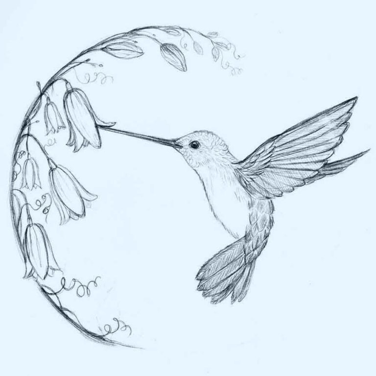 Колибри рисунок карандашом