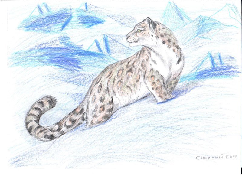 ![Снежный Барс цветными карандашами]()