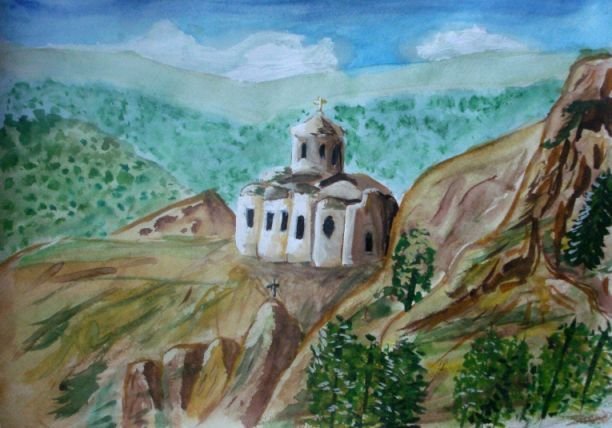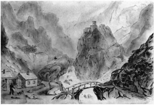 ![Акварель Лермонтова Дарьяльское ущелье]()