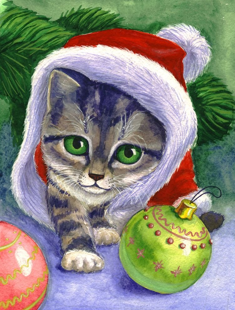 ![Раскраски новогодние котята]()