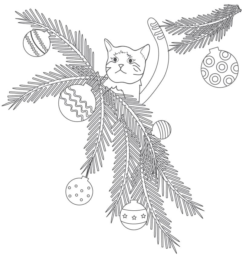 Раскраска новый год котик и ёлка