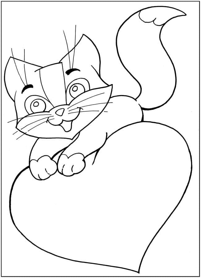 ![Кот с сердечком раскраска]()