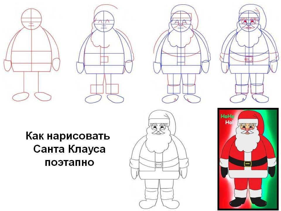 Поэтапное рисование Деда Мороза