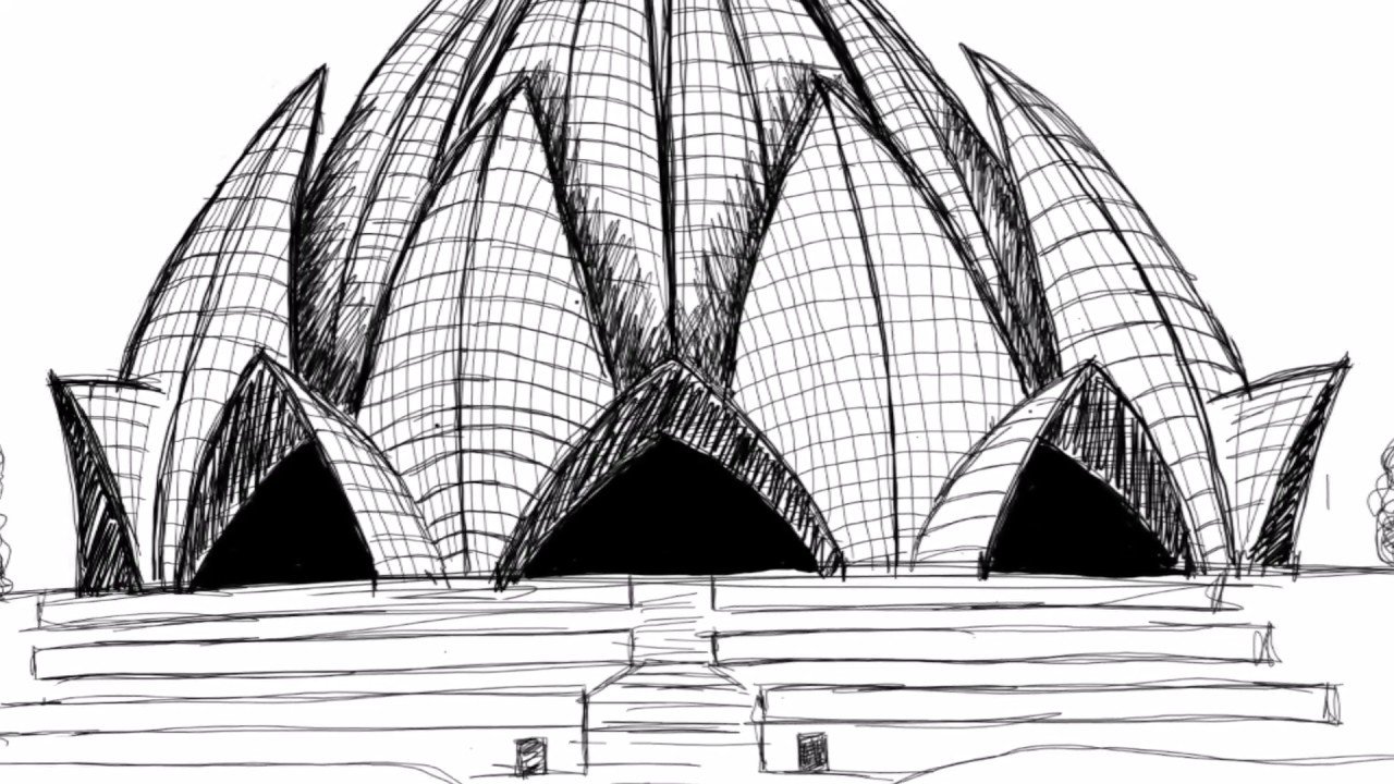 ![Храм лотоса Дели Индия эскиз]()