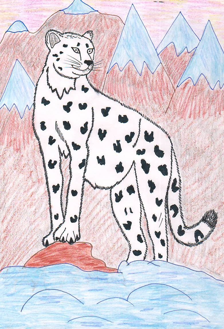 ![Снежный Барс цветными карандашами]()
