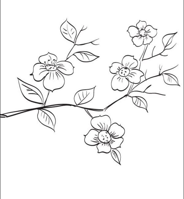Цветы на ветке раскраска
