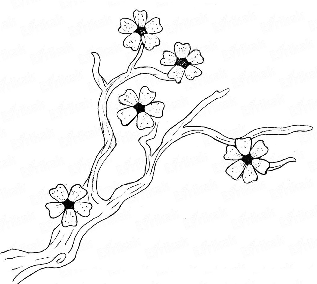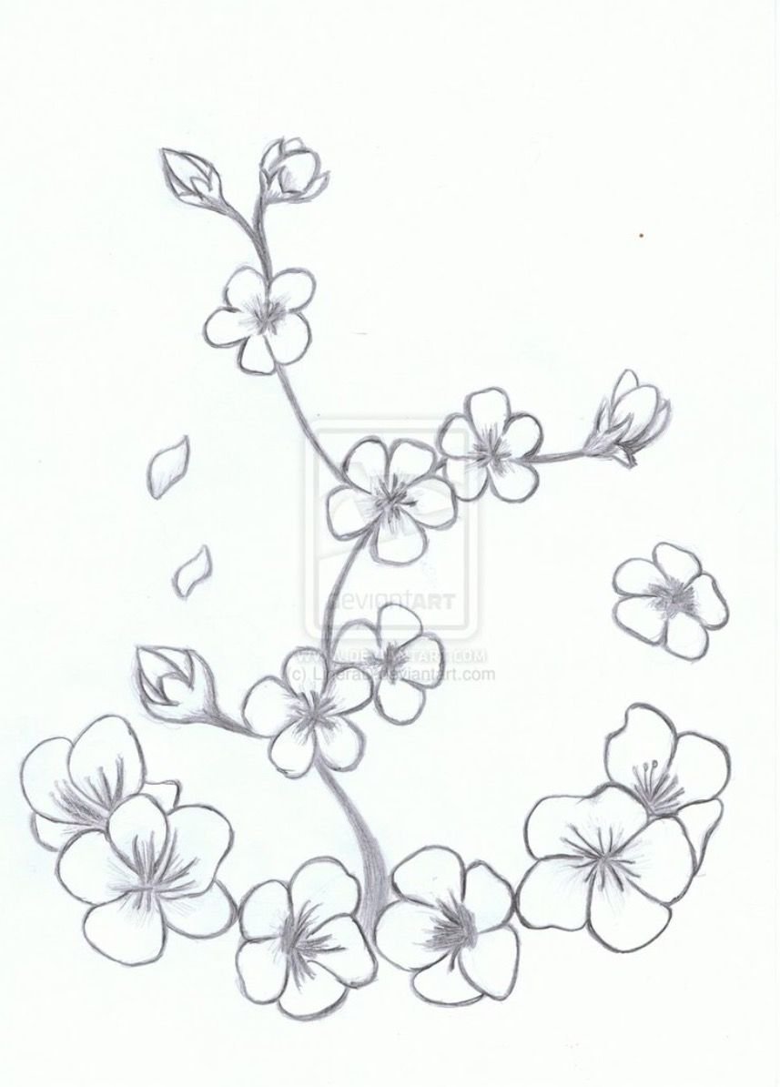 Ветка Сакуры рисунок карандашом