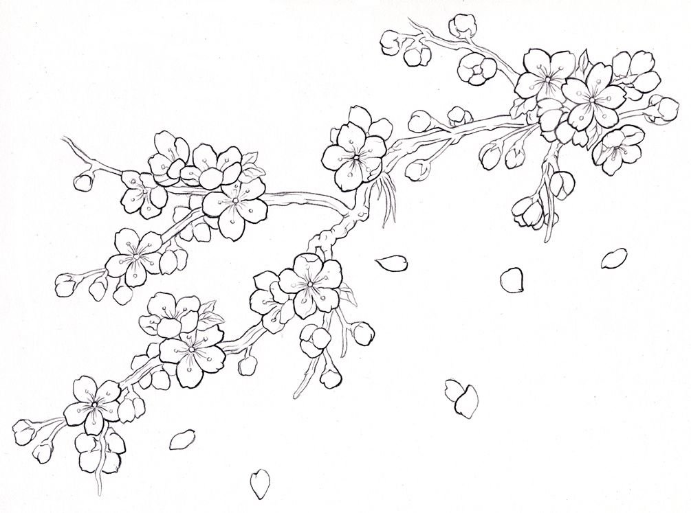 ![Ветка Сакуры рисунок карандашом]()