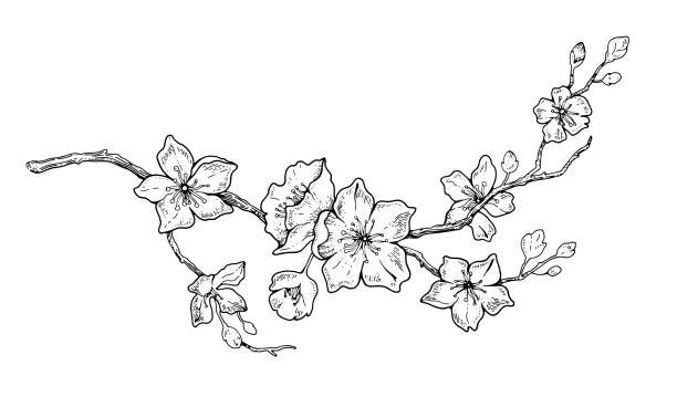 ![Ветка Сакуры черно белая]()