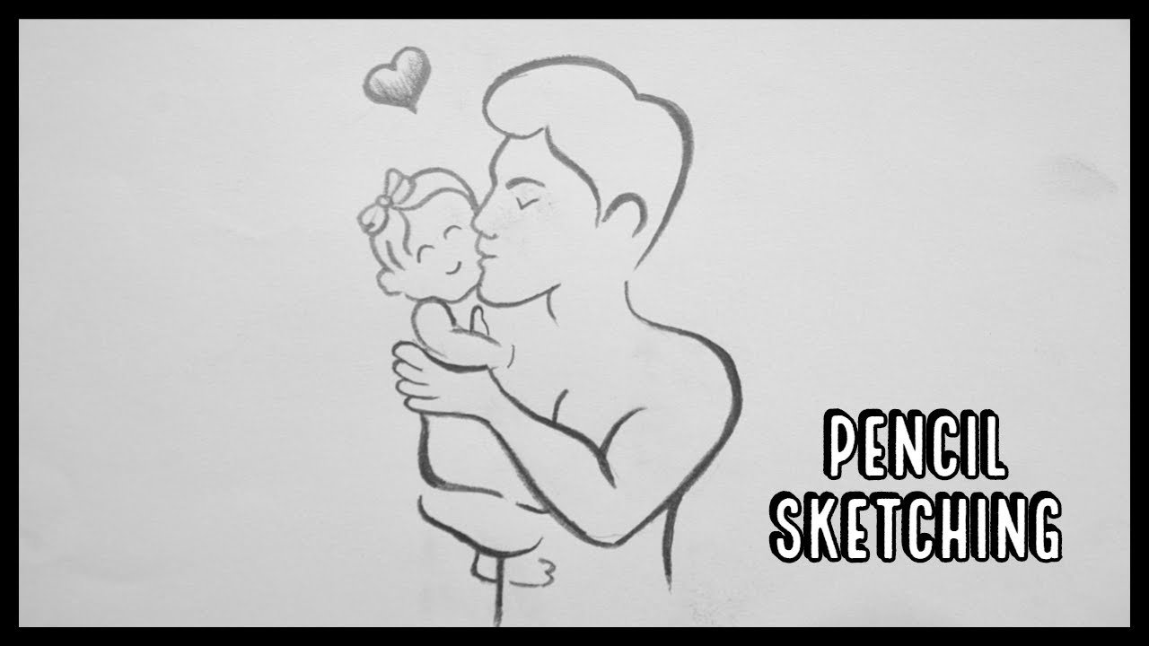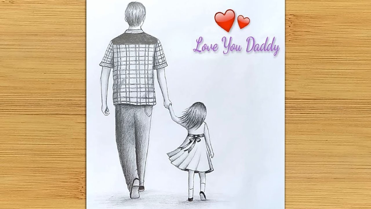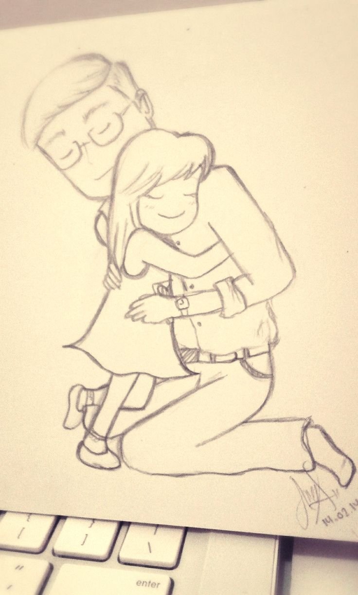 ![Папа и дочь рисунок карандашом]()
