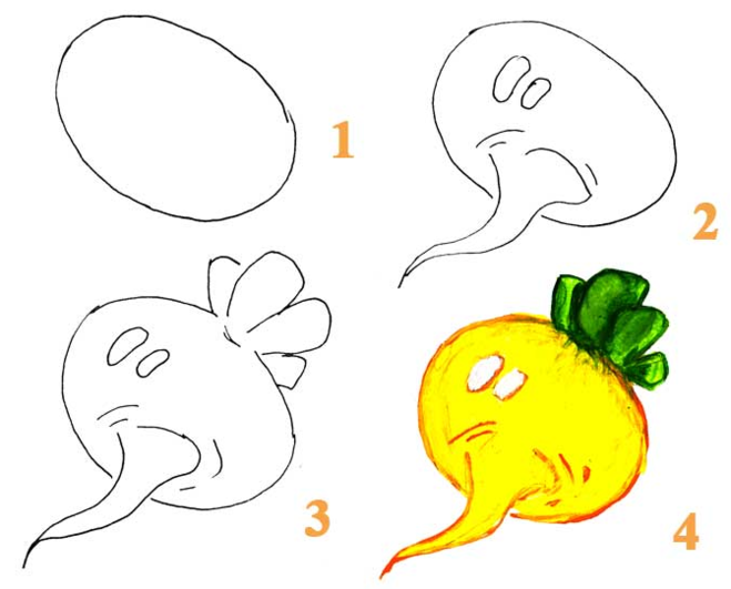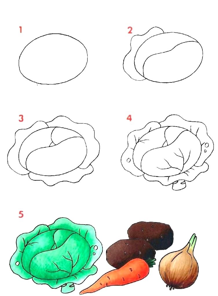 ![Поэтапное рисование овощей и фруктов в подготовительной группе]()