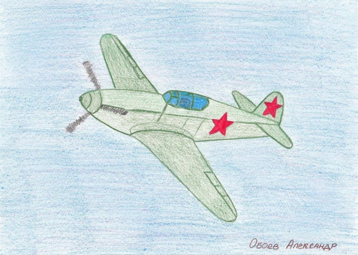 ![Военный самолет рисунок для детей карандашом]()