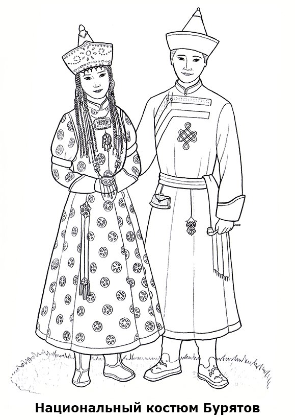 Национальный костюм бурятов раскраска