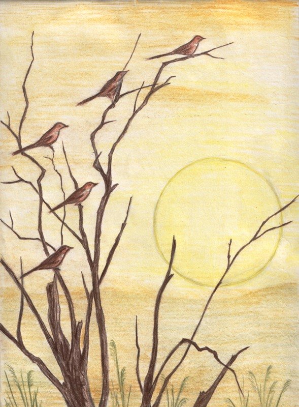 ![Весенний пейзаж цветными карандашами]()