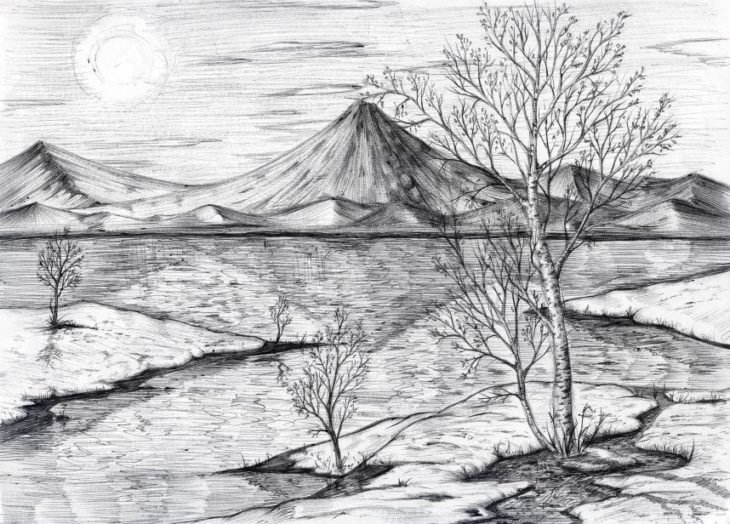 Пейзаж рисунок карандашом