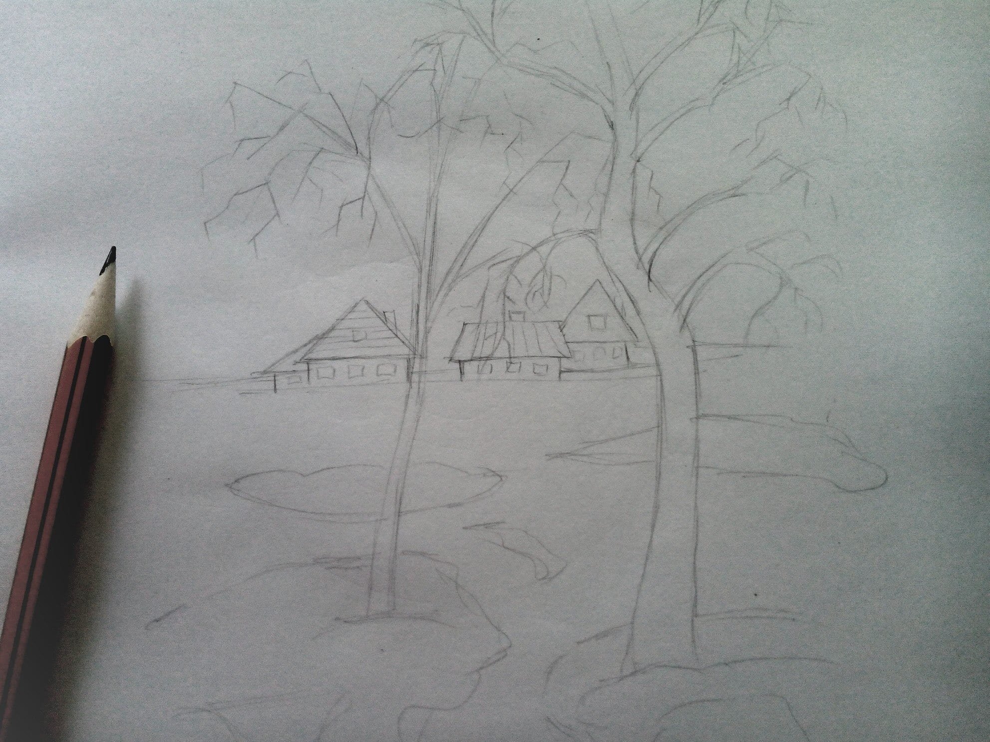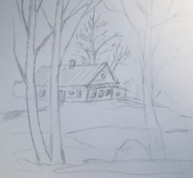 Этапы рисования пейзажа карандашом