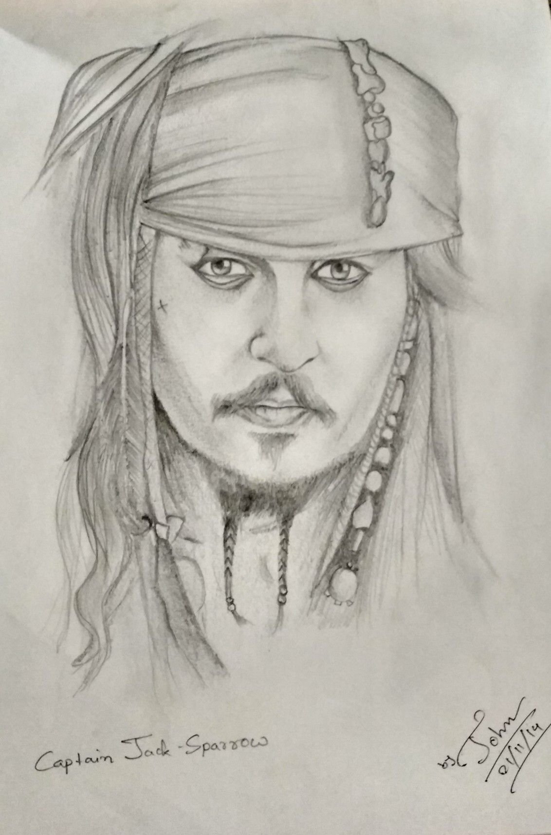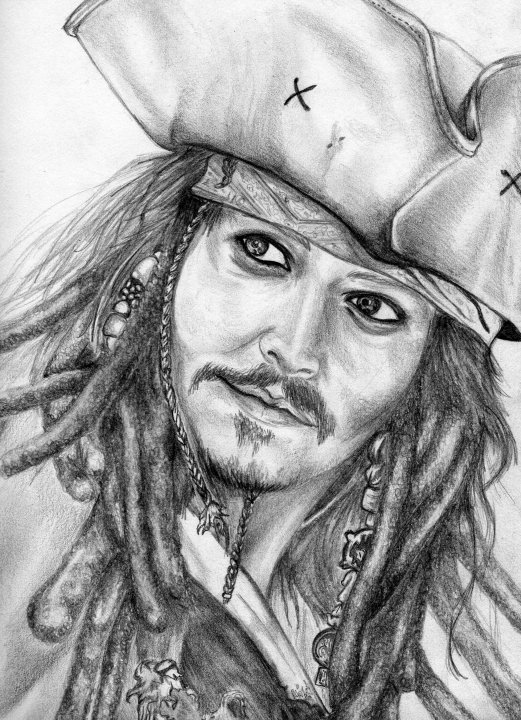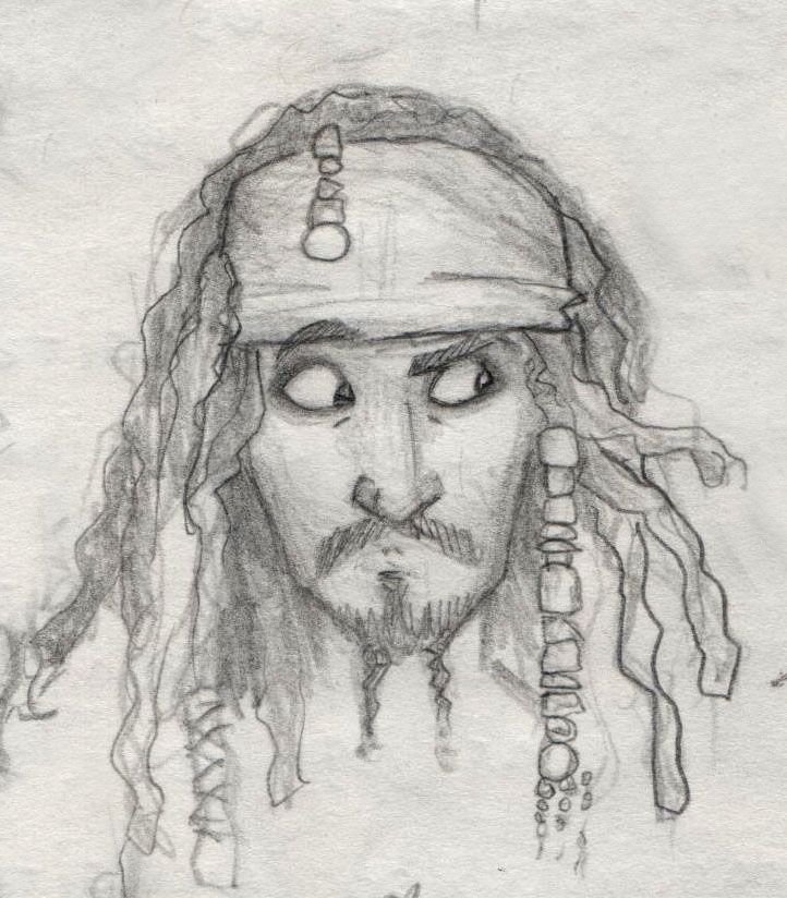 ![Джек Воробей карандашом для срисовки]()